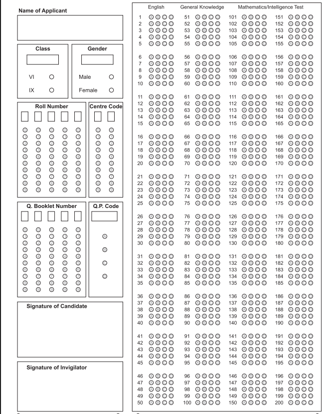 OMR షీట్లో జవాబులు బాల్ పెన్తో మాత్రమే వలయం నింపడం ద్వారా గుర్తించాలి.