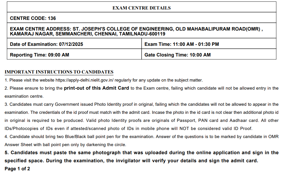 ID కార్డ్ పై ఉన్న ఫోటో మరియు పేరు Admit Card పై ఉన్న వాటితో సరిపోవాలి.