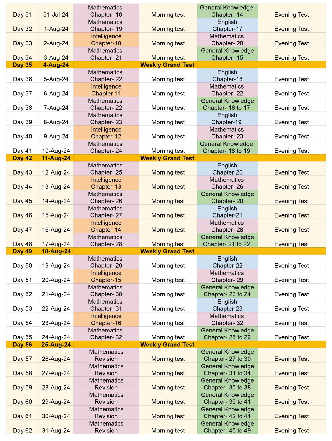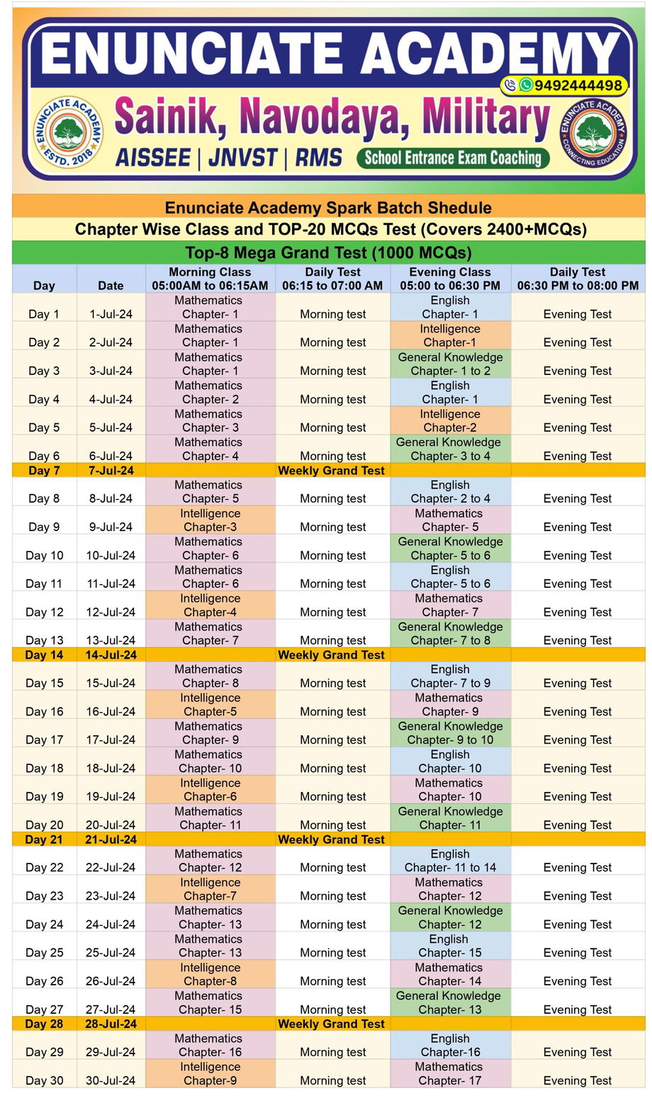 60 days - Spark Batch Time Table
